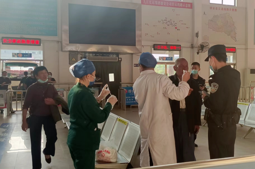 4月24日下午,九江長運德安公司員工賀永忠在車站進站口疫情防控點值班,看到遠處一個身影顫顫巍巍地往里走,賀