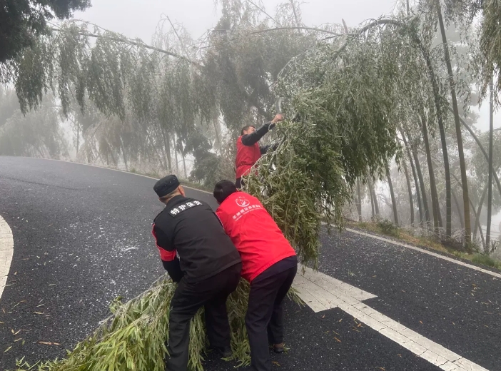 近日,受低溫冰凍天氣影響,武功山景區(qū)內(nèi)部分竹子被冰凍后倒伏在路面上,給游客出行和景區(qū)車輛通行帶來了安全隱